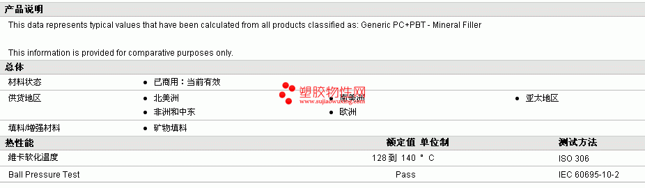 Generic PC+PBT - Mineral Filler物性表详细情况如图