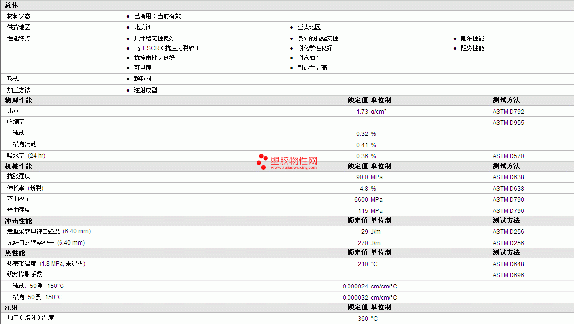 | 弯曲强度 | 115 | MPa | ASTM D790 |