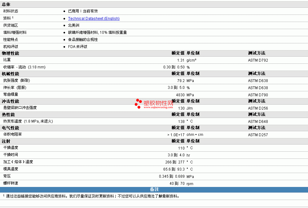 | 机械性能 | 额定值 | 单位制 | 测试方法 |