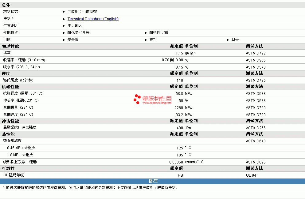| 比重 | 1.15 | g/cm³ | ASTM D792 |