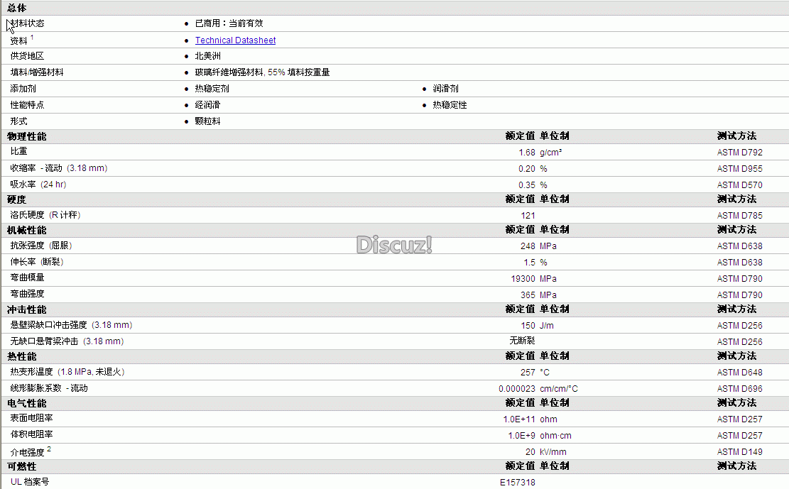 HiFill PA6/6 GF55 HS L物性表资料详情如图