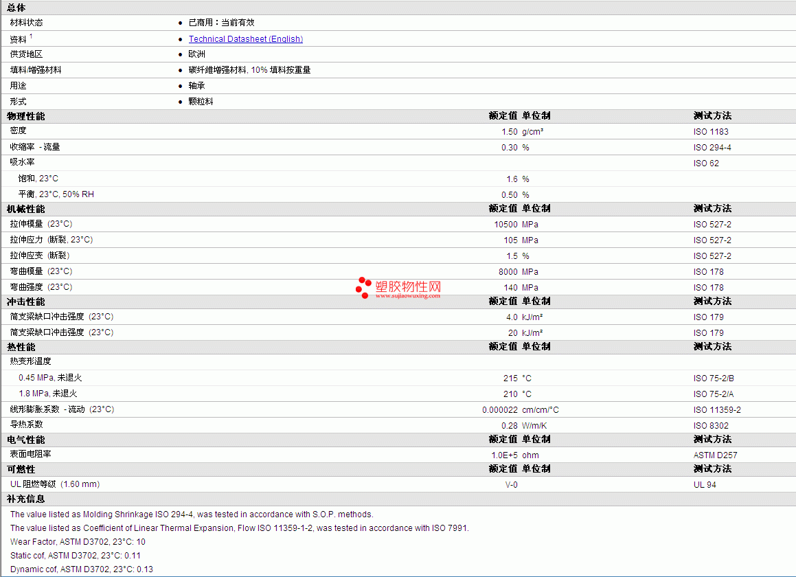 | 拉伸应变 (断裂) | 1.5 | % | ISO 527-2 |
