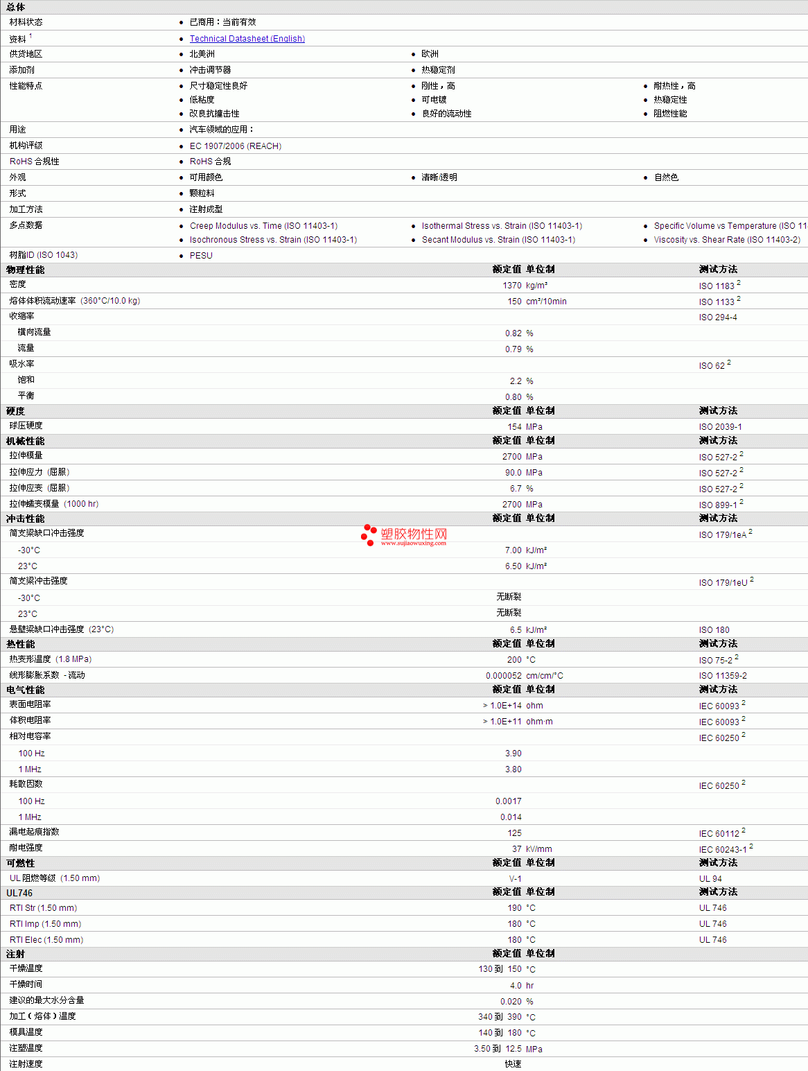 Ultrason PES E 1010物性表详情如图