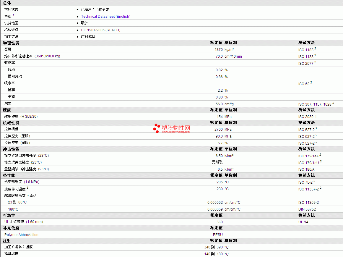 | 熔体体积流动速率 (360°C/10.0 kg) | 70.0 | cm³/10min | ISO 1133 2 |