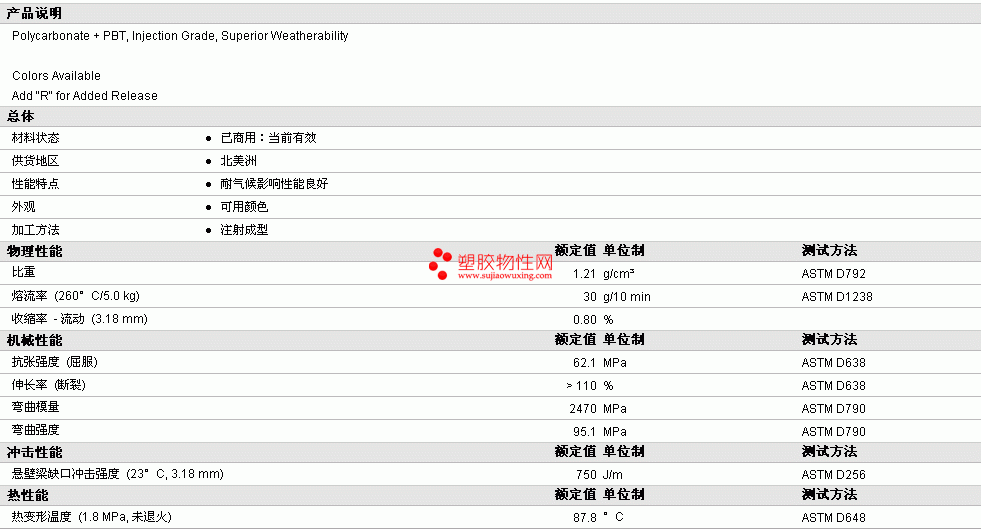 | 机械性能 | 额定值 | 单位制 | 测试方法 |