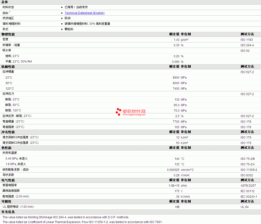 LEIS PC GF 30物性表如图所示