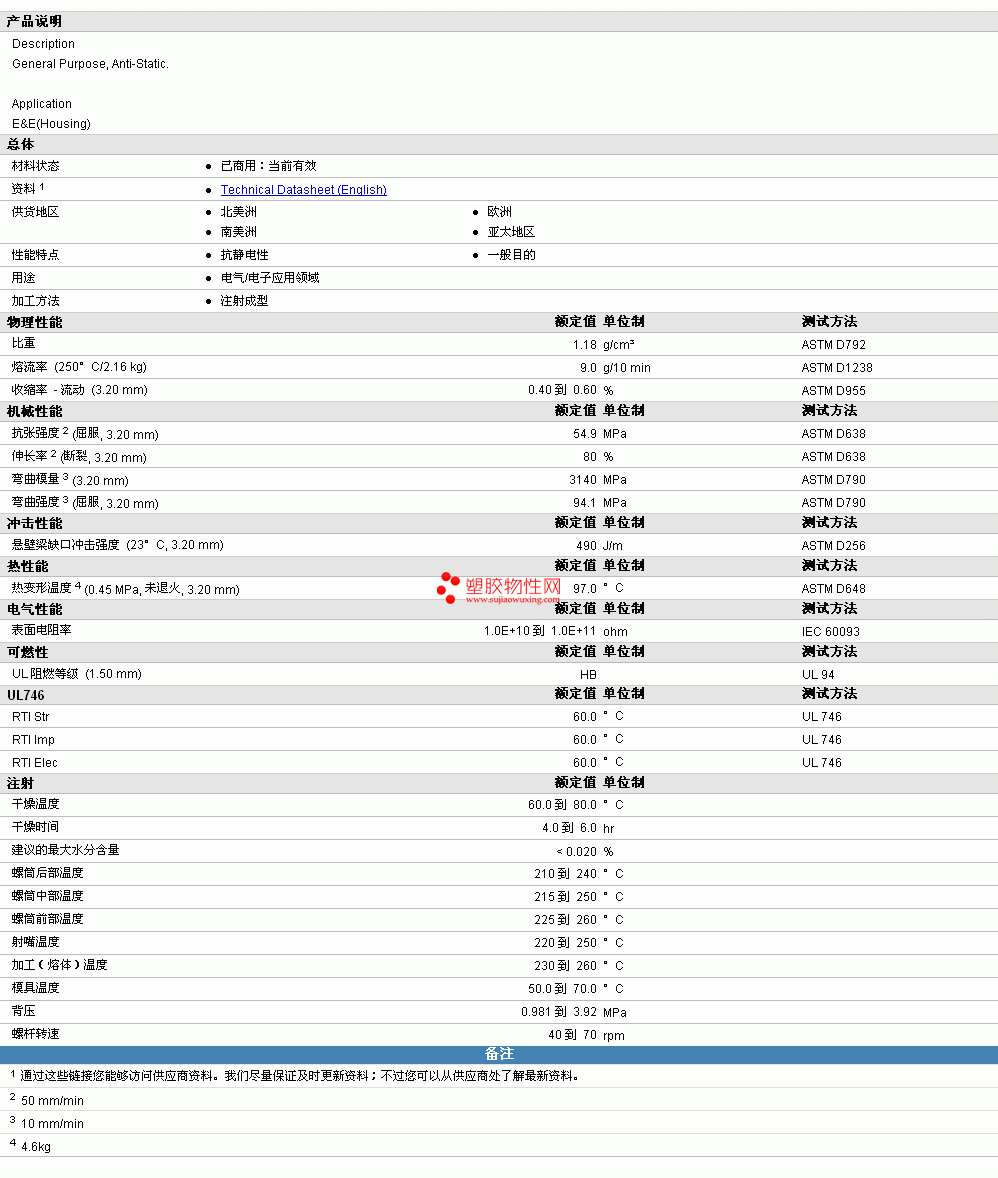 | 收缩率 - 流动 (3.20 mm) | 0.40 到 0.60 | % | ASTM D955 |