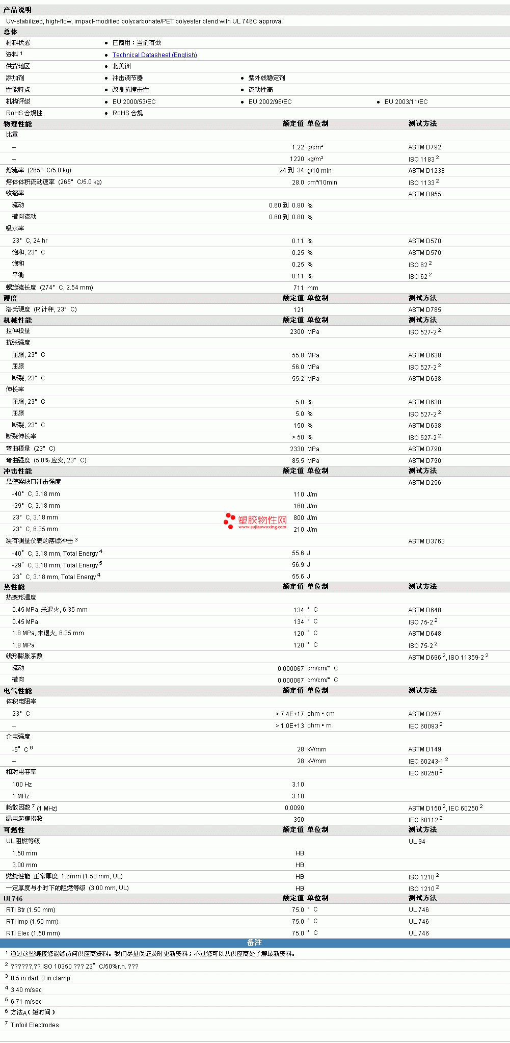 | 熔流率 (265°C/5.0 kg) | 24 到 34 | g/10 min | ASTM D1238 |
