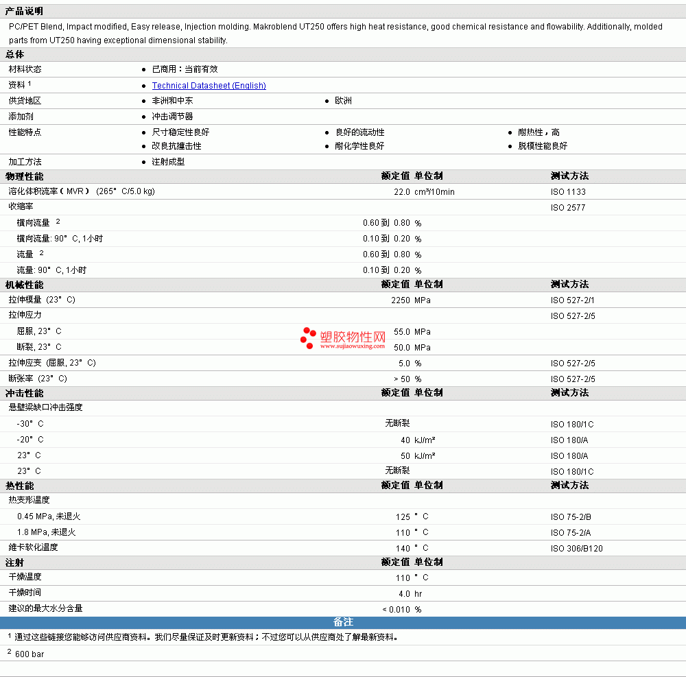 需了解Makroblend PC/PBT UT250物性表材质证明、ROHS(SGS)报告、物质安全资料表(MSDS)、UL黄卡等可来电咨询:赵生:13424755533 QQ:27660005
