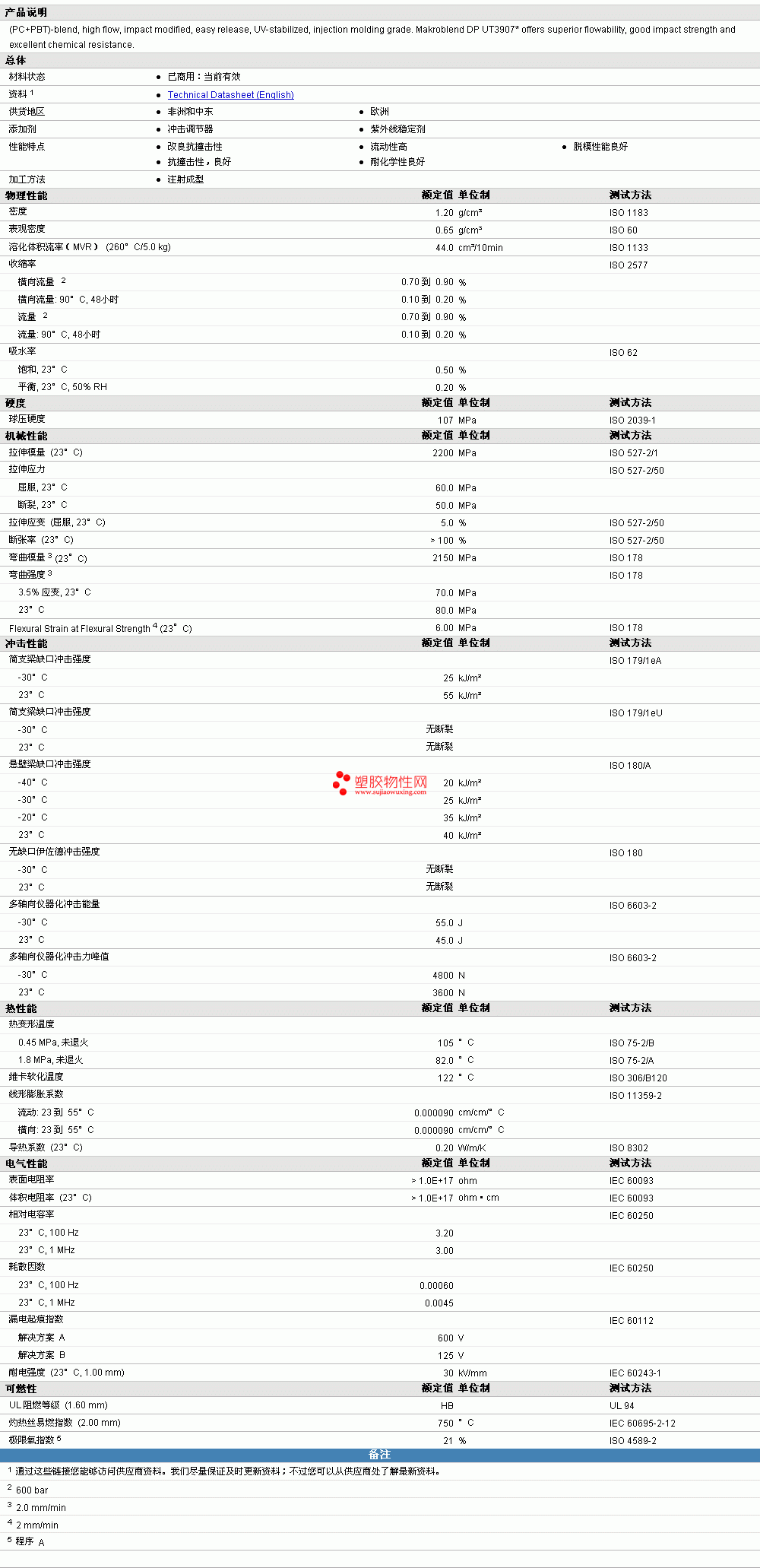 Makroblend PC/PBT UT3907物性表更多资料见图