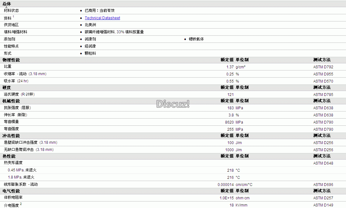 HiFill PA6/6 GF33 SF L物性表详情如图