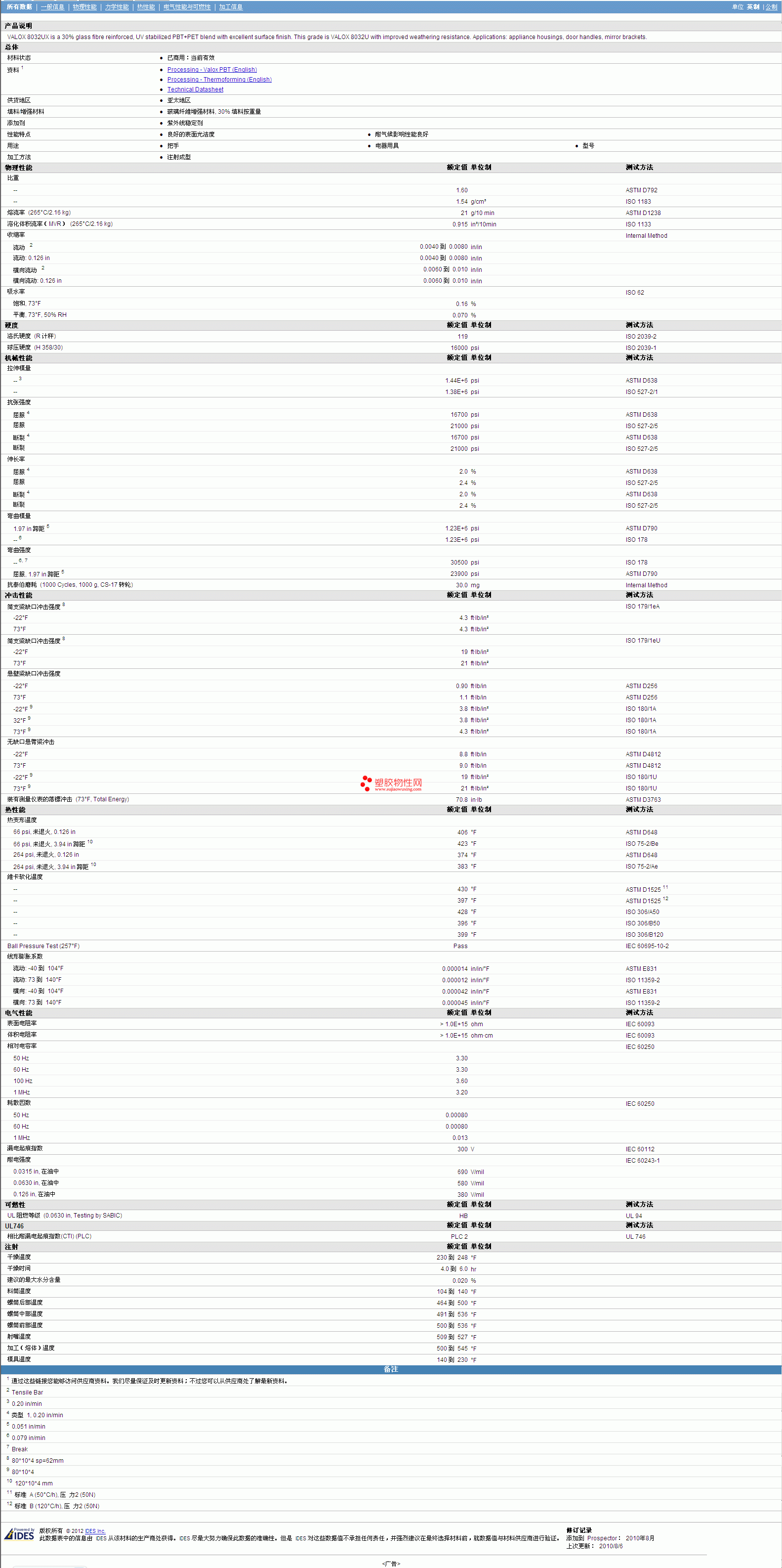 更多VALOX PBT/PET 8032UX Resin 物性表图片,报价、物质安全资料表(MSDS)、材质证明、UL黄卡等,最新行情报价等可来电咨询赵先生:13424755533或QQ: 27660005