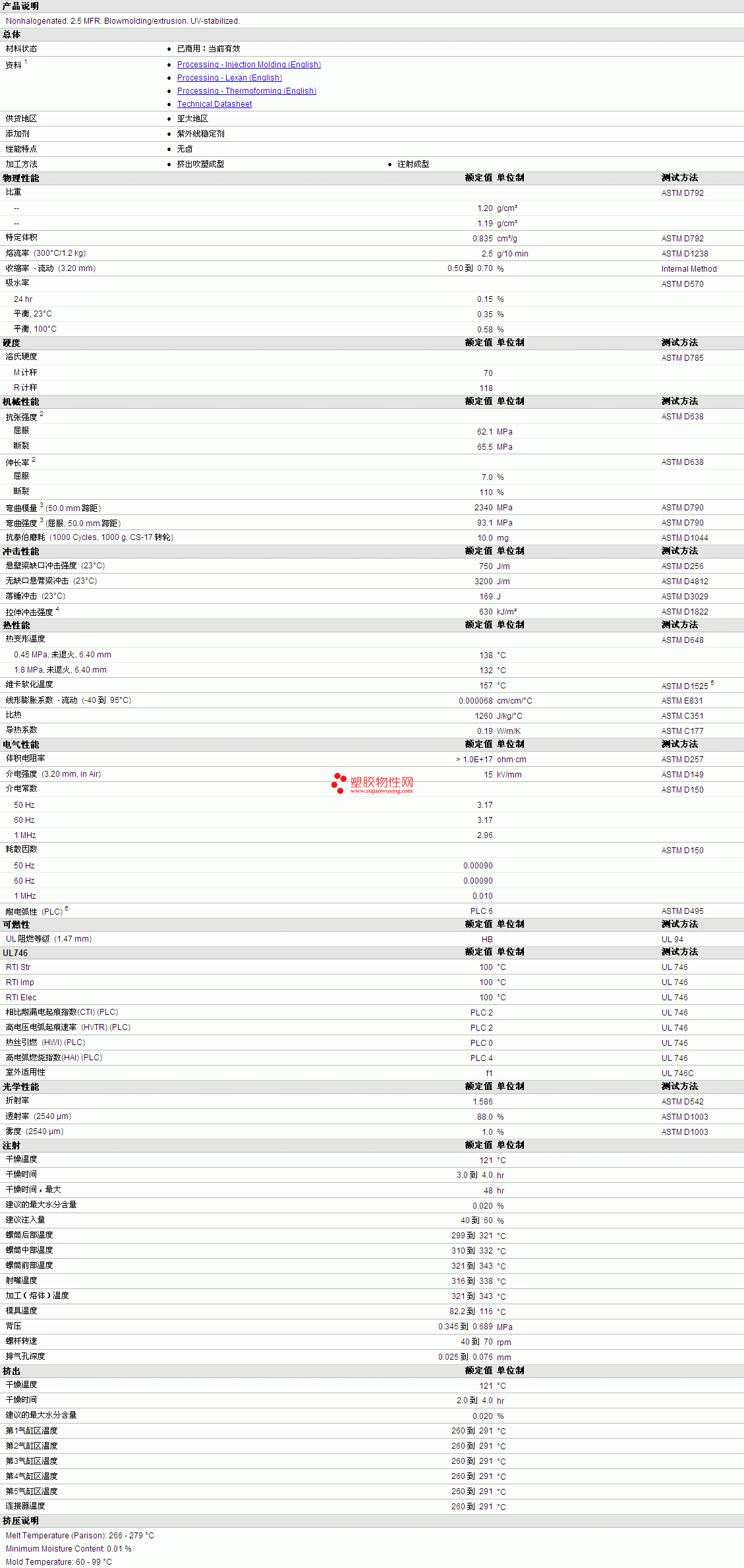 LEXAN PC 153 Resin 物性表详情见附件