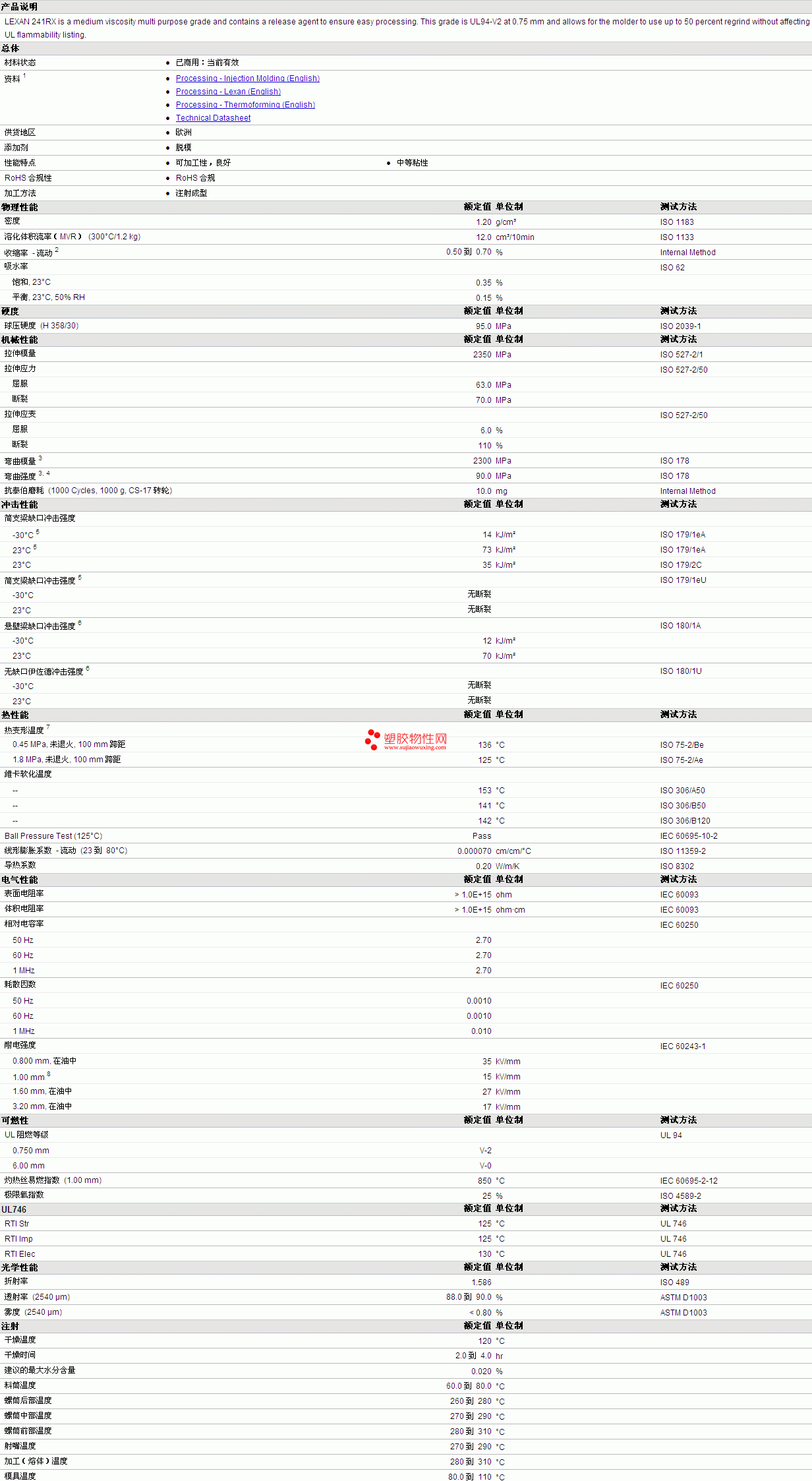 如需了解LEXAN PC 241RX Resin图片、物质安全资料表(MSDS)、材质证明、UL黄卡等,最新行情报价等可来电咨询或QQ:767320520