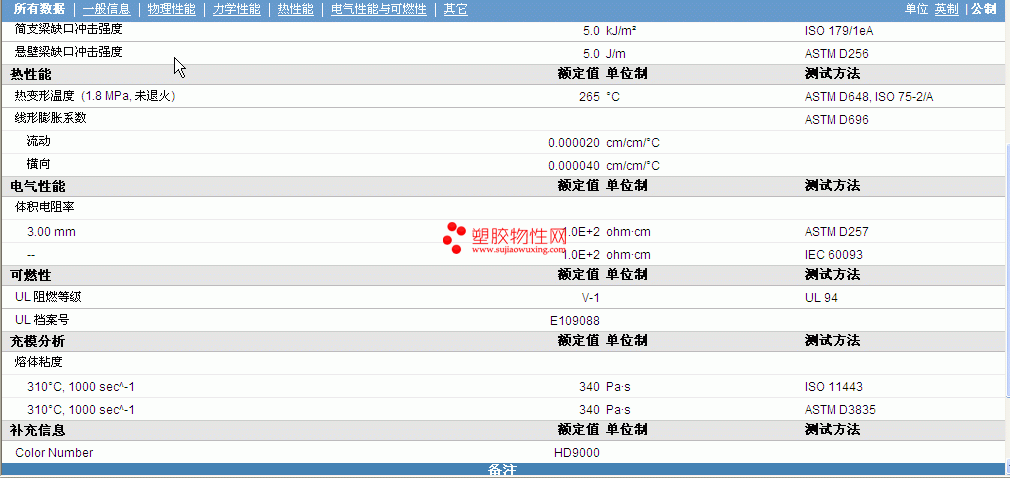 | 物理性能 | 额定值 | 单位制 | 测试方法 |