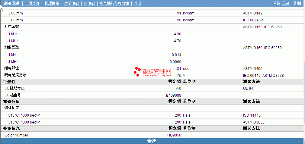 | 物理性能 | 额定值 | 单位制 | 测试方法 |