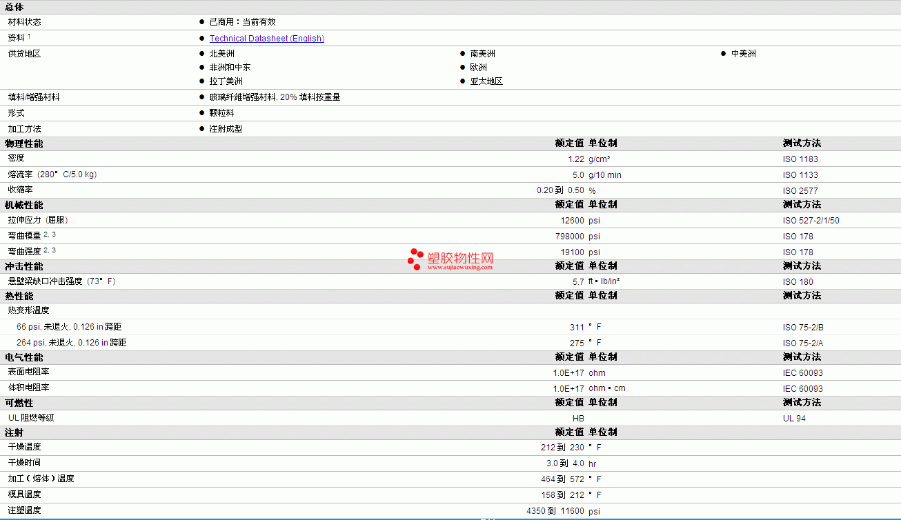 | 收缩率 | 0.20 到 0.50 | % | ISO 2577 |