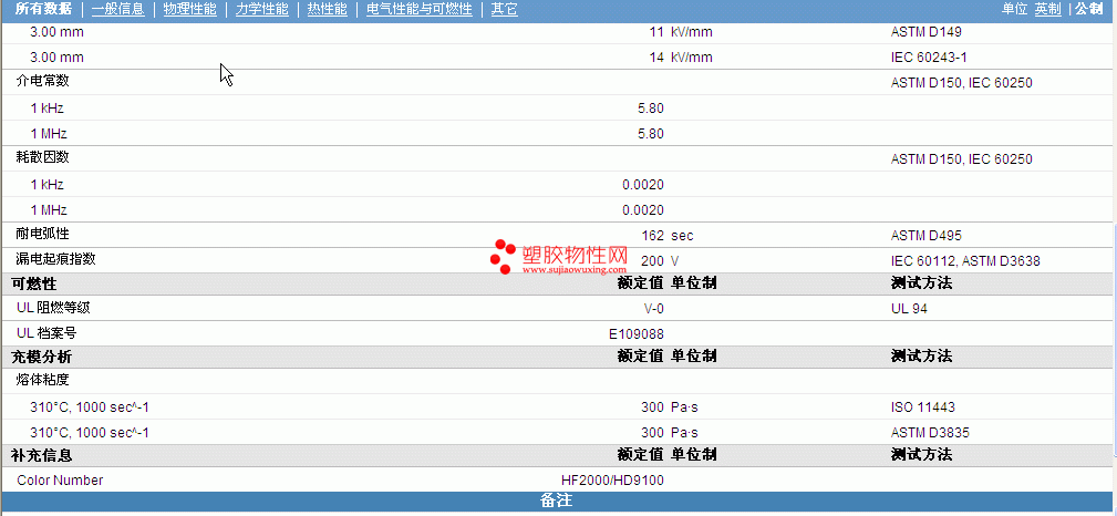 | 物理性能 | 额定值 | 单位制 | 测试方法 |
