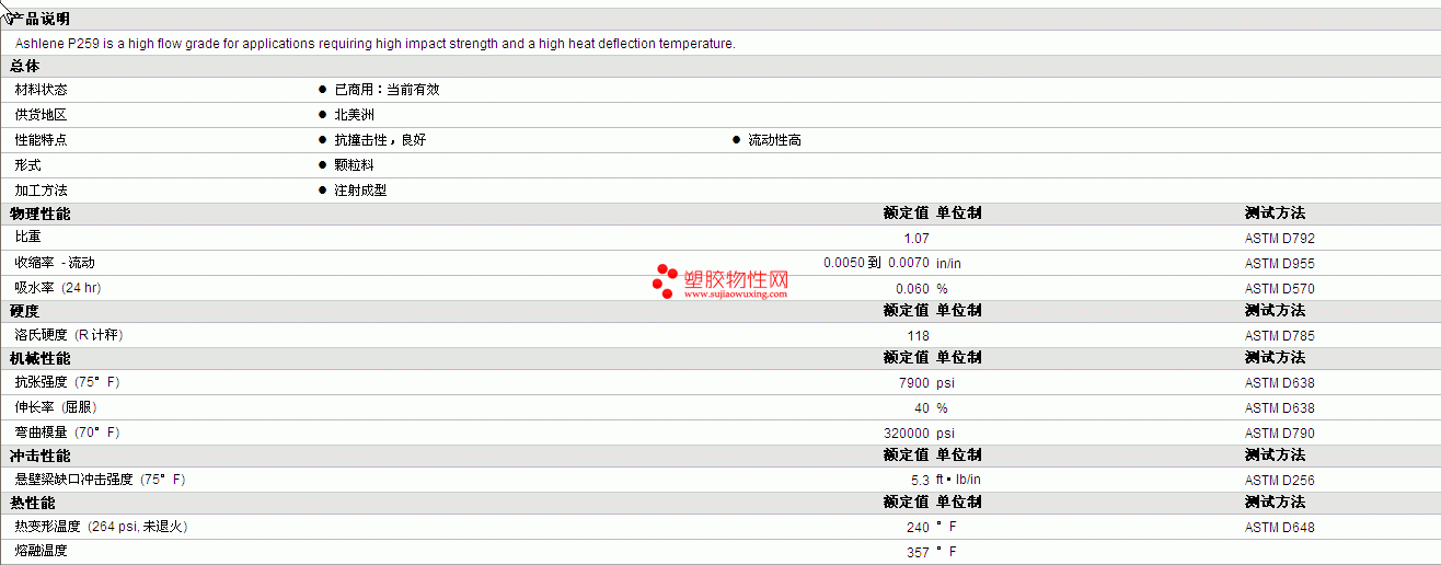 ASHLENE PPE P259物性表 详细情况如图