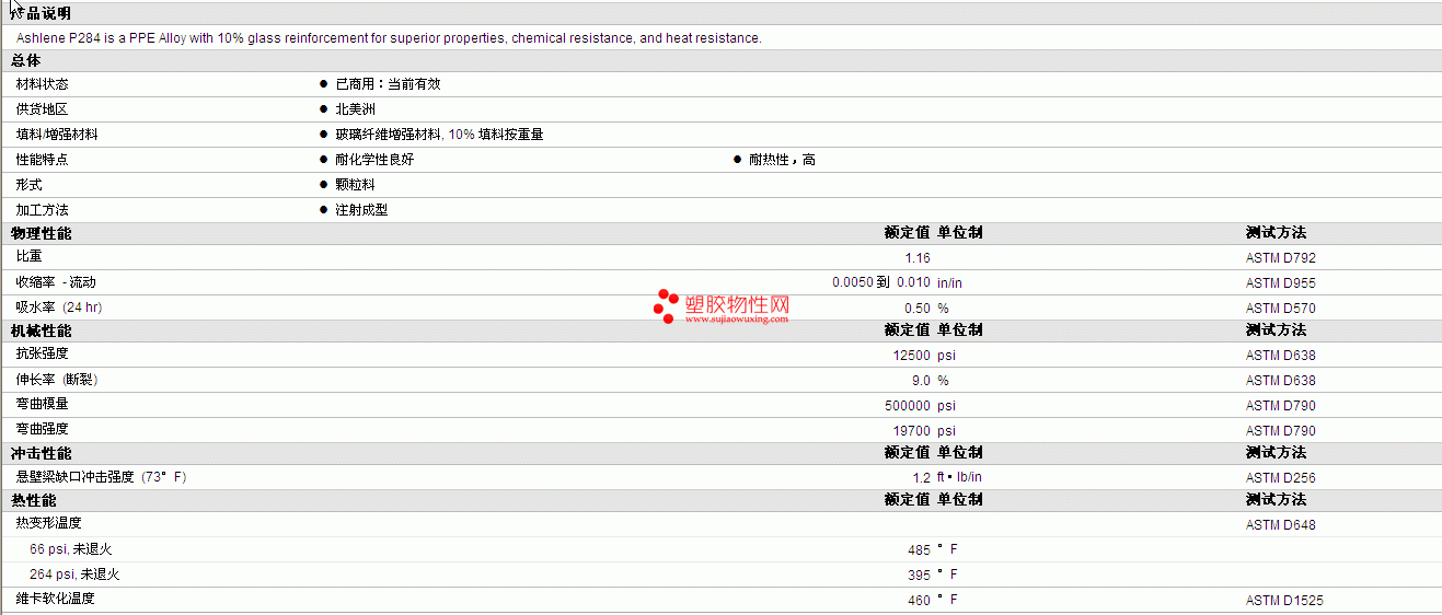 | 收缩率 - 流动 | 0.0050 到 0.010 | in/in | ASTM D955 |