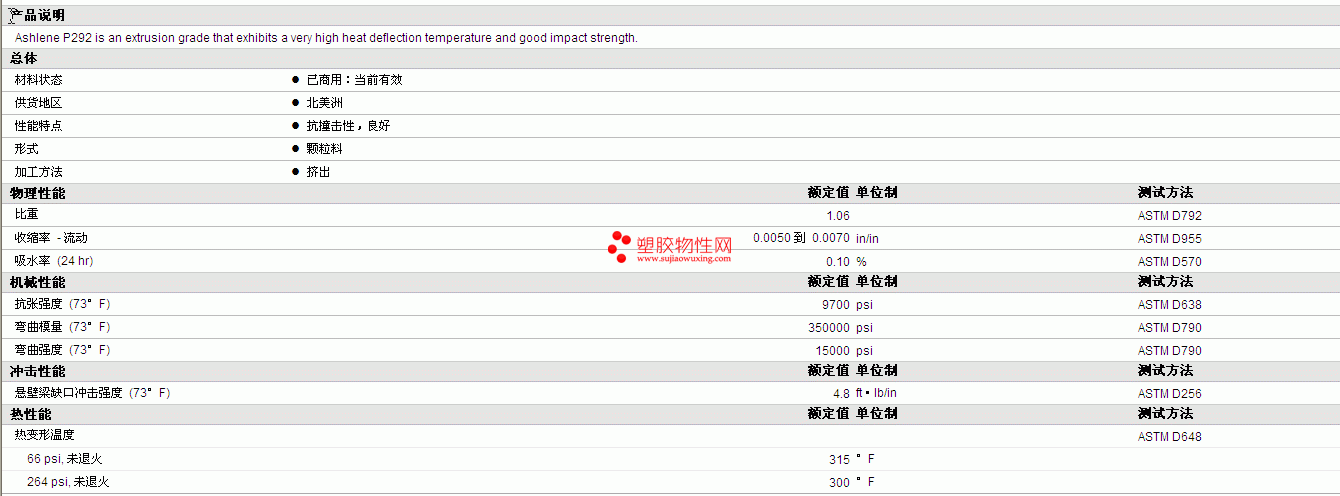 | 抗张强度 (73°F) | 9700 | psi | ASTM D638 |