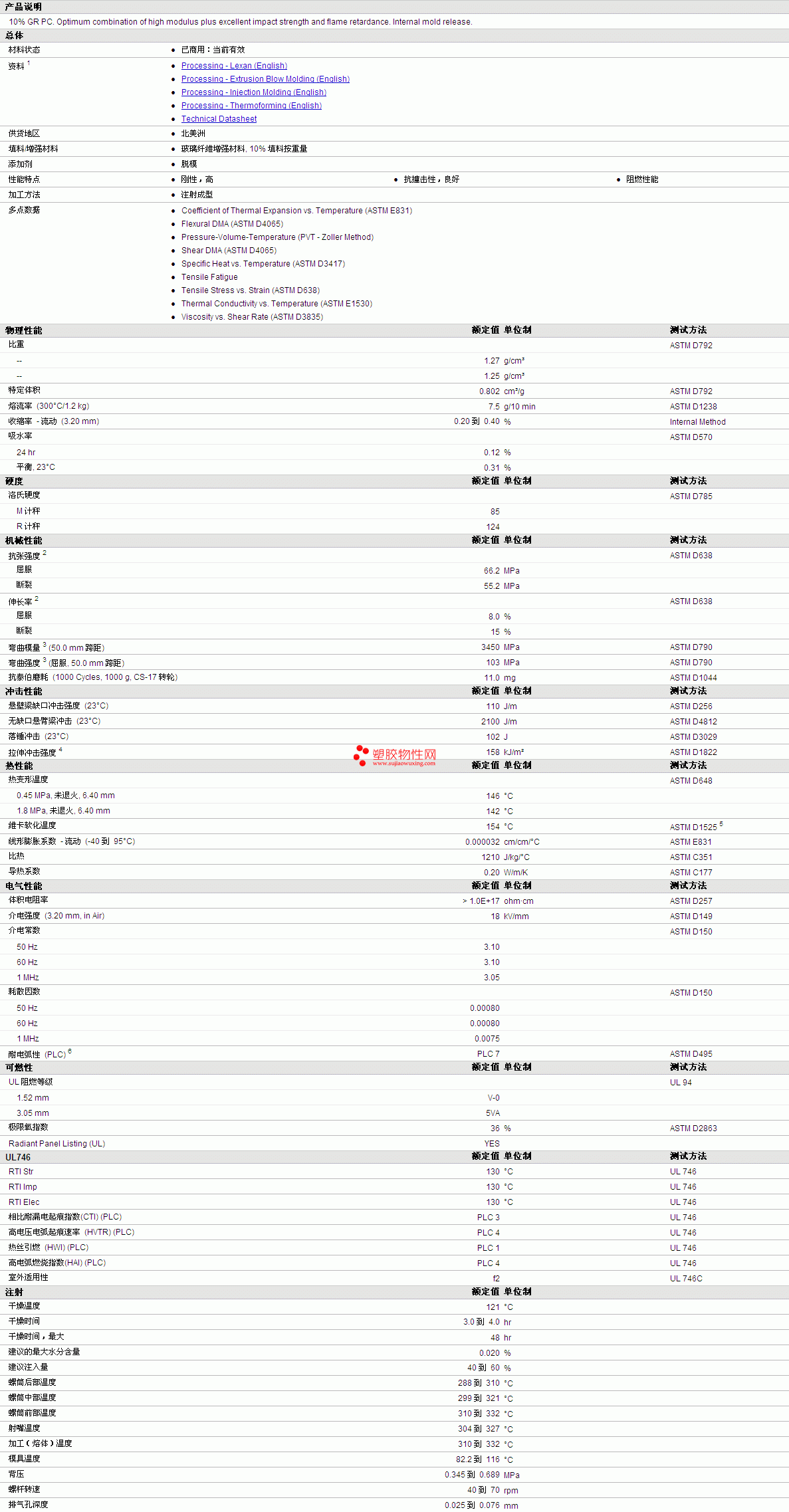 | 收缩率 - 流动 (3.20 mm) | 0.20 到 0.40 | % | Internal Method |