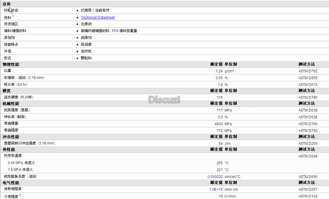 HiFill PA6/6 GF15 L物性表详情如图所示