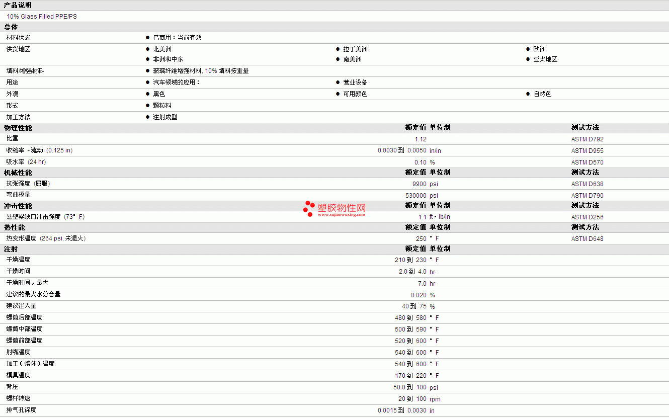 | 弯曲模量 | 530000 | psi | ASTM D790 |