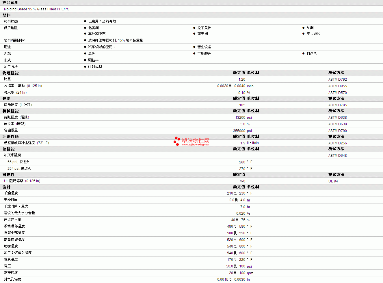 | 机械性能 | 额定值 | 单位制 | 测试方法 |