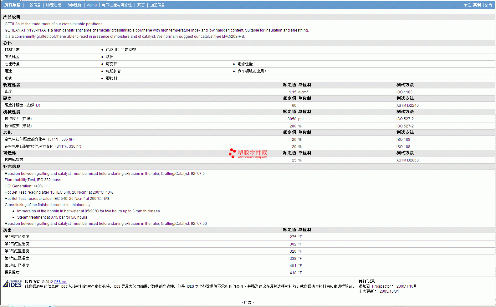 需了解GETILAN XLPE ATP/190-X1AA物性表材质证明、ROHS(SGS)报告、物质安全资料表(MSDS)、UL黄卡等可来电咨询:赵先生:13424755533或QQ: 27660005