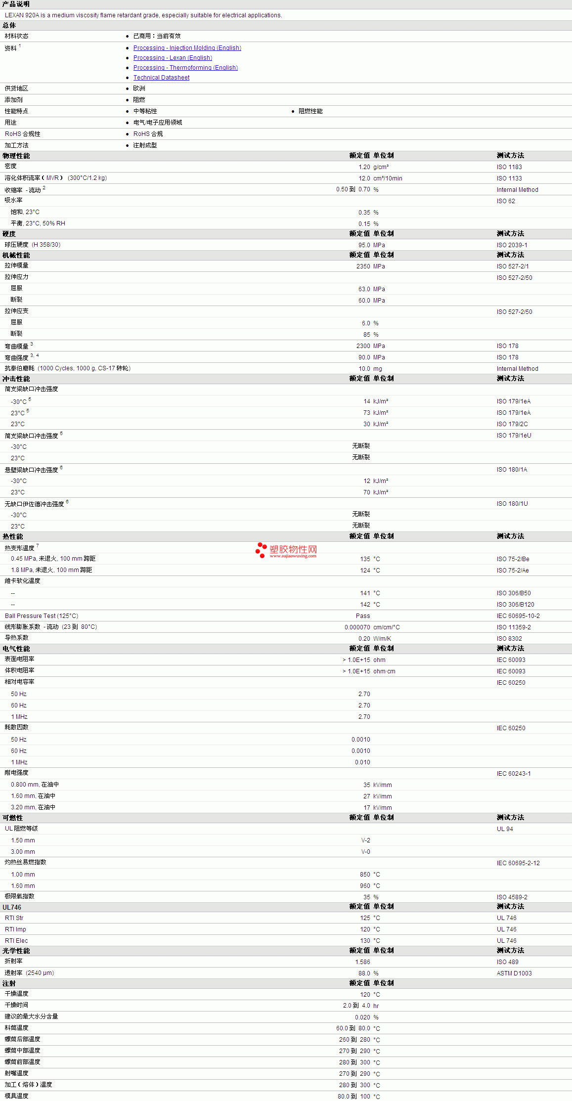 更多LEXAN PC 920A Resin物质安全资料表(MSDS)、材质证明、UL黄卡等,最新行情报价等可来电咨询或QQ:767320520