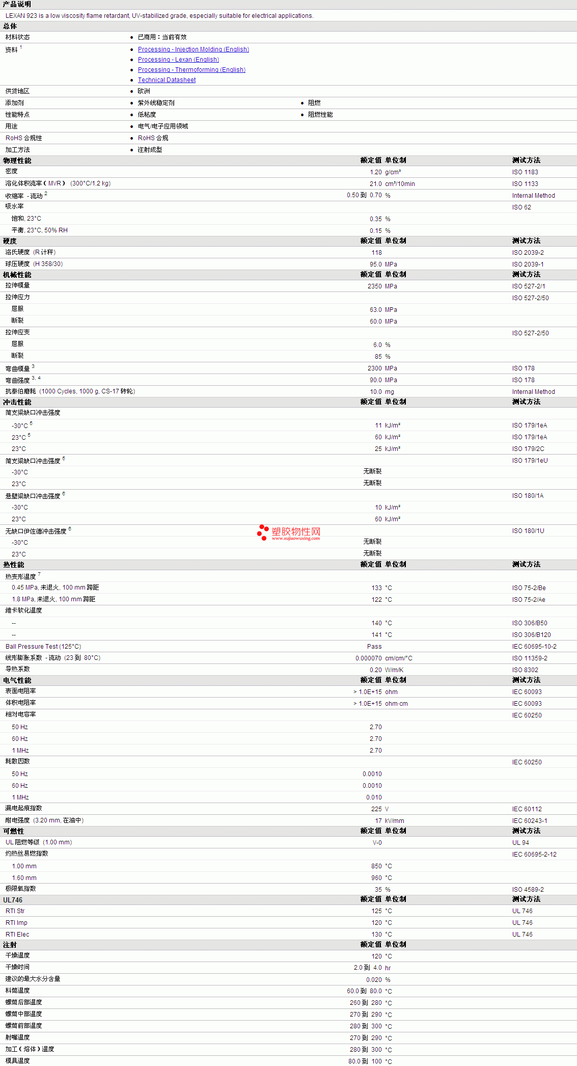 需了解LEXAN PC 923 Resin、ROHS(SGS)报告、物质安全资料表(MSDS)、UL黄卡等可来电咨询或QQ:767320520