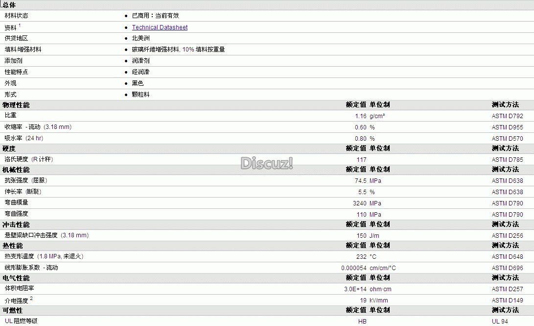 HiFill PA6-6 GF10 IM L BK物性表详细内容如图
