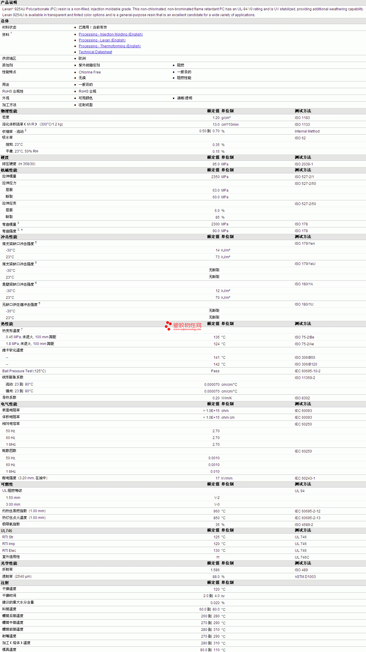 LEXAN PC 925AU Resin塑料更多详情,其他塑胶原料物性LCP E130I、PA9T GN2330、HIPS 475可来电咨询或QQ:767320520