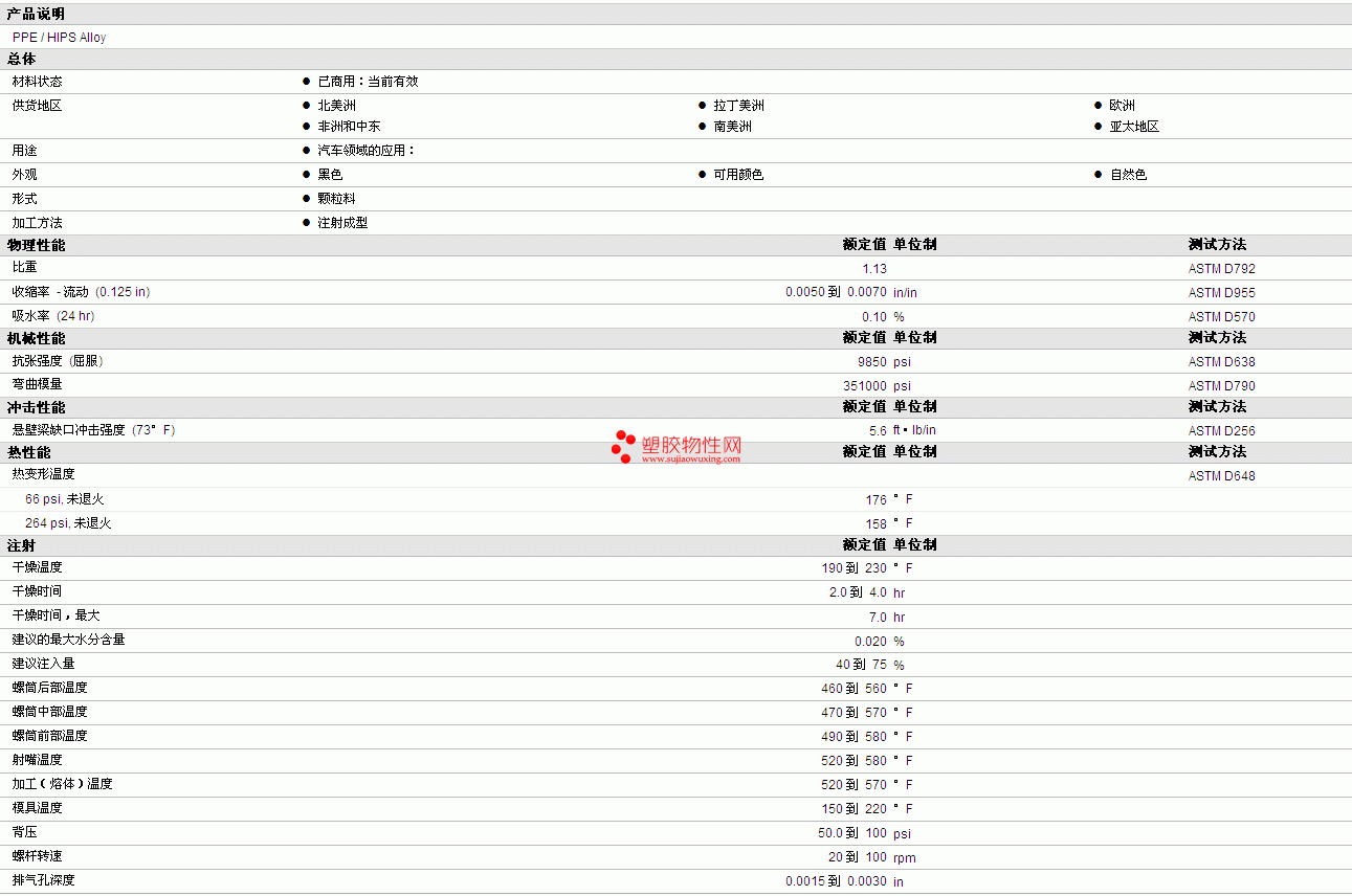 | 弯曲模量 | 351000 | psi | ASTM D790 |