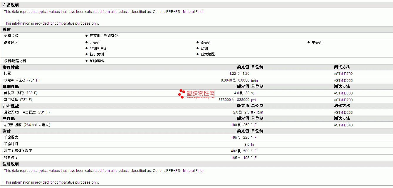 | 收缩率 - 流动 (73°F) | 0.0040 到 0.0060 | in/in | ASTM D955 |