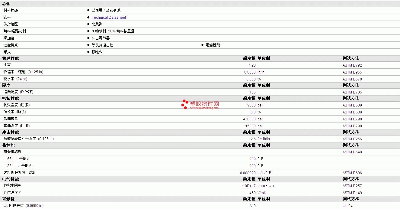 | 机械性能 | 额定值 | 单位制 | 测试方法 |