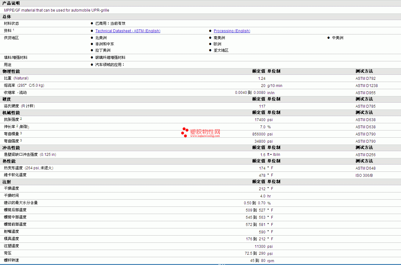 | 机械性能 | 额定值 | 单位制 | 测试方法 |