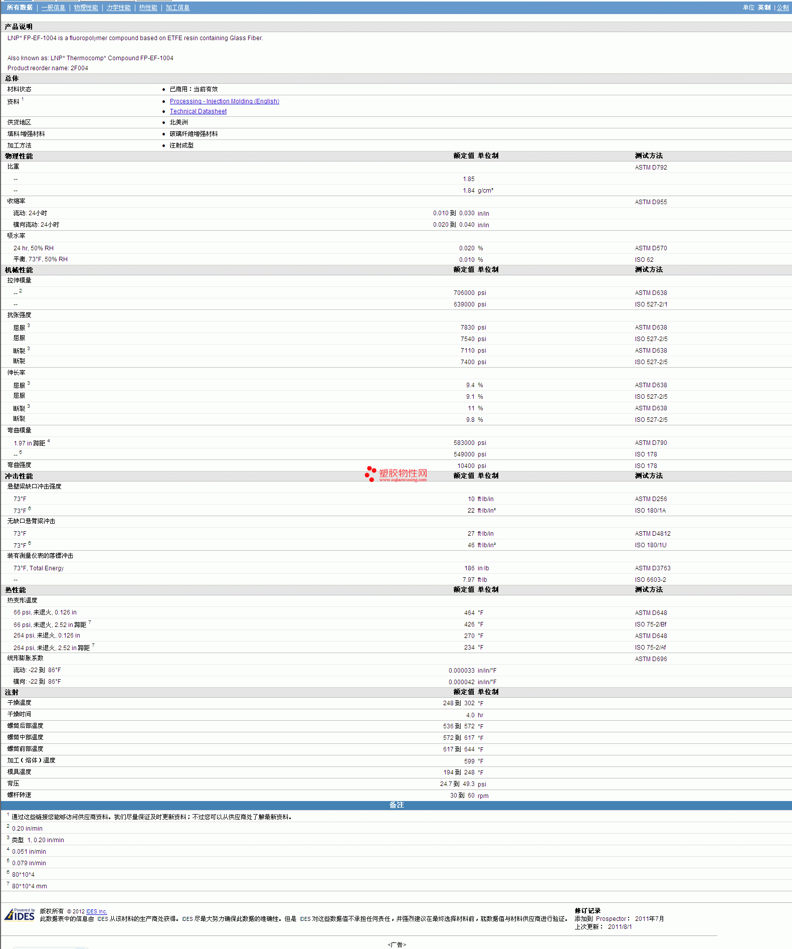 需了解LNP Thermocomp ETFE 2F004物性表更多详情,材质证明、ROHS(SGS)报告、物质安全资料表(MSDS)、UL黄卡等,最新行情报价等可来电咨询:赵先生:13424755533或QQ: 27660005