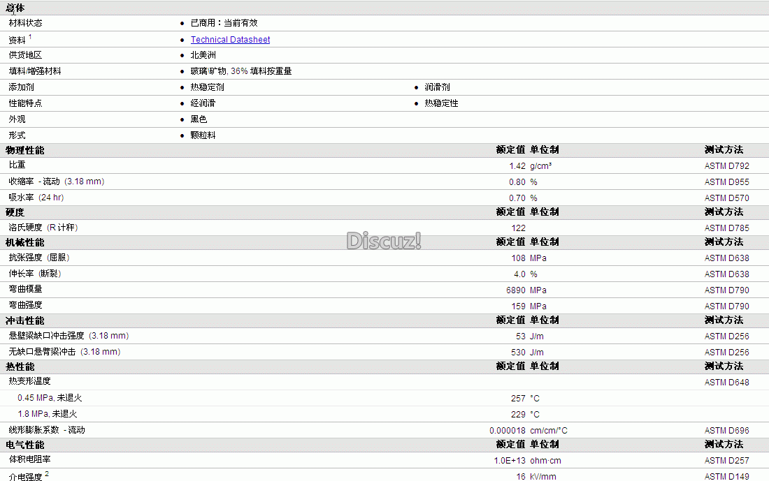HiFill PA6/6 GF/M36 HS BK物性表详情如图