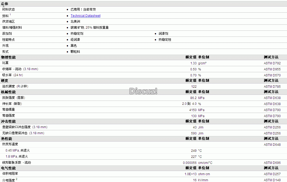 HiFill PA6/6 GF/M25 HS L BK物性表详情如图
