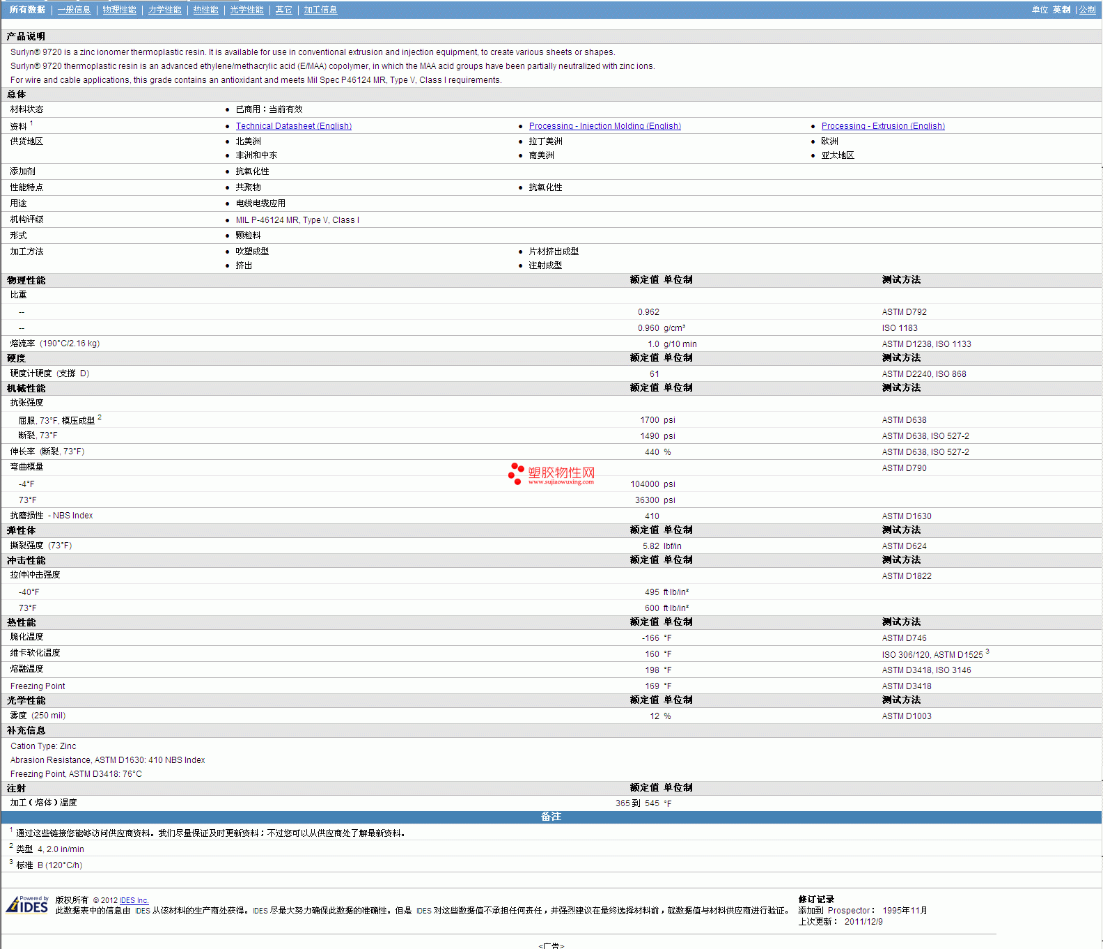需了解Surlyn EMAA 9720物性表材质证明、ROHS(SGS)报告、物质安全资料表(MSDS)、UL黄卡等可来电咨询:赵先生:13424755533或QQ: 27660005