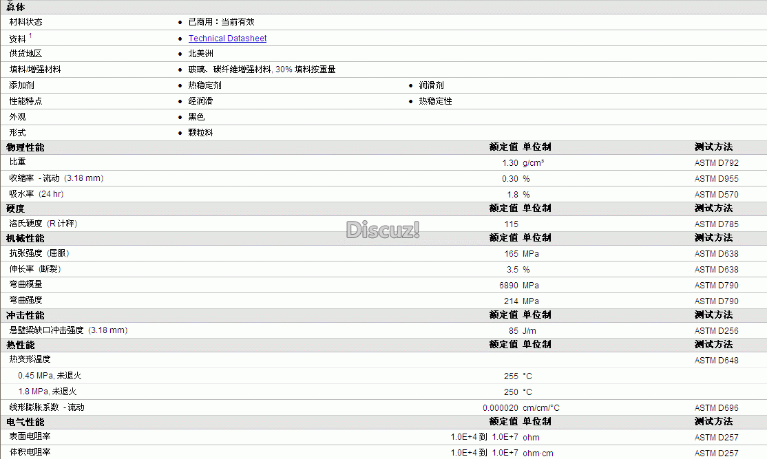 HiFill PA6/6 G/CF30 L BK物性表详情如图所示