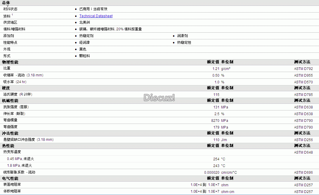 HiFill PA6/6 G/CF20 IM HS BK物性表详情如图