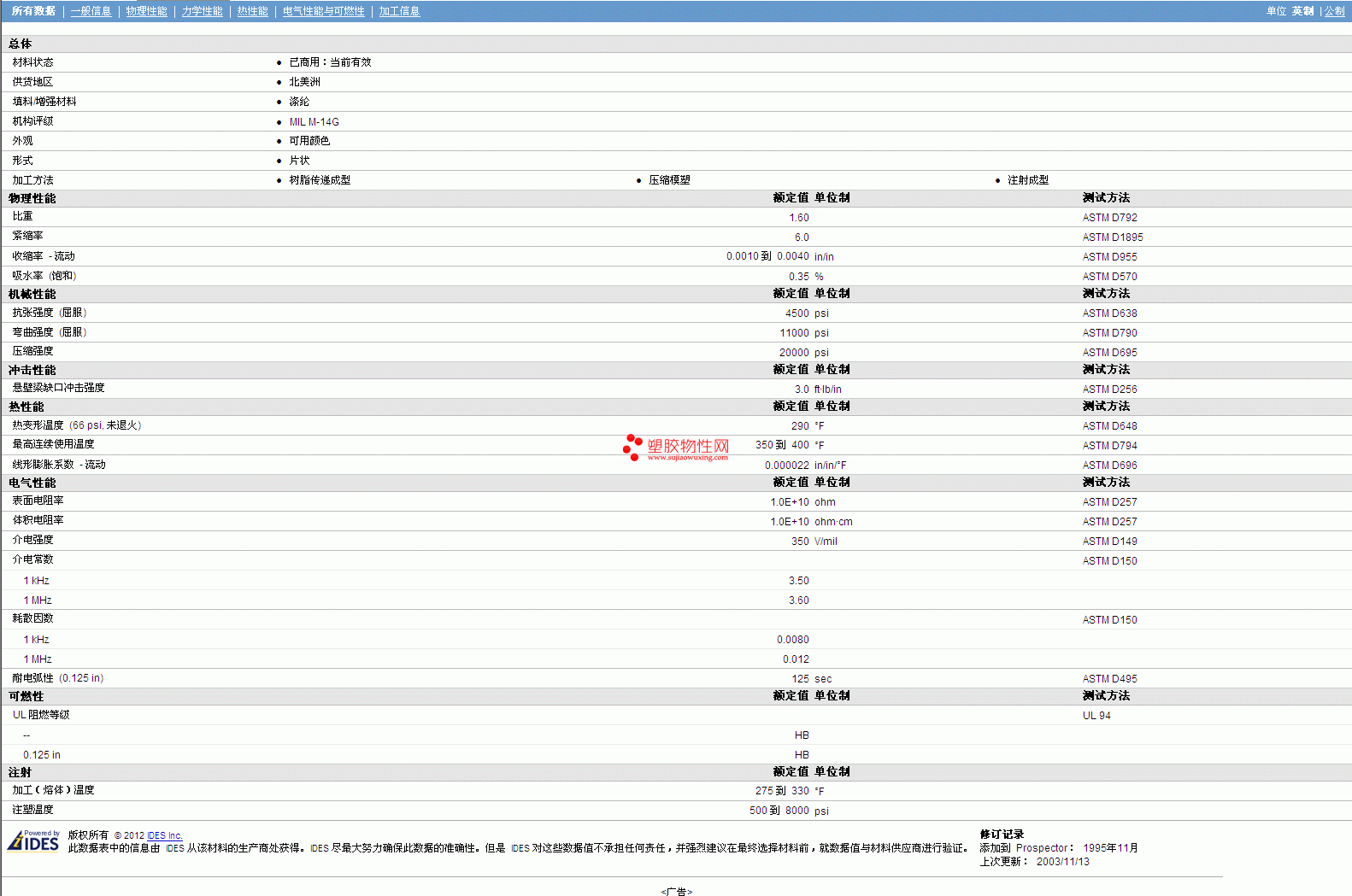 其他工程塑料物性表