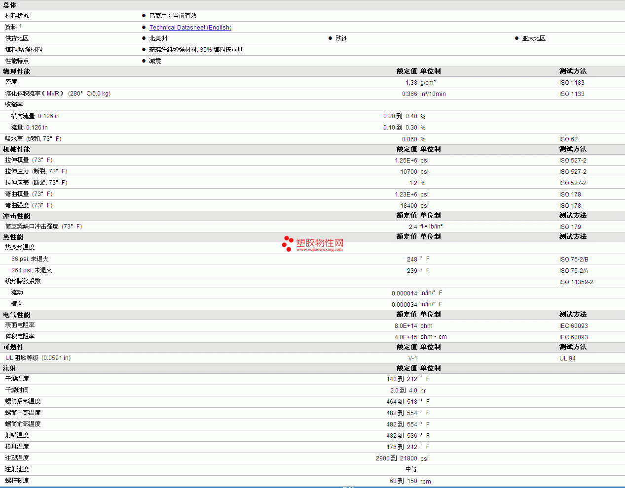 | 机械性能 | 额定值 | 单位制 | 测试方法 |
