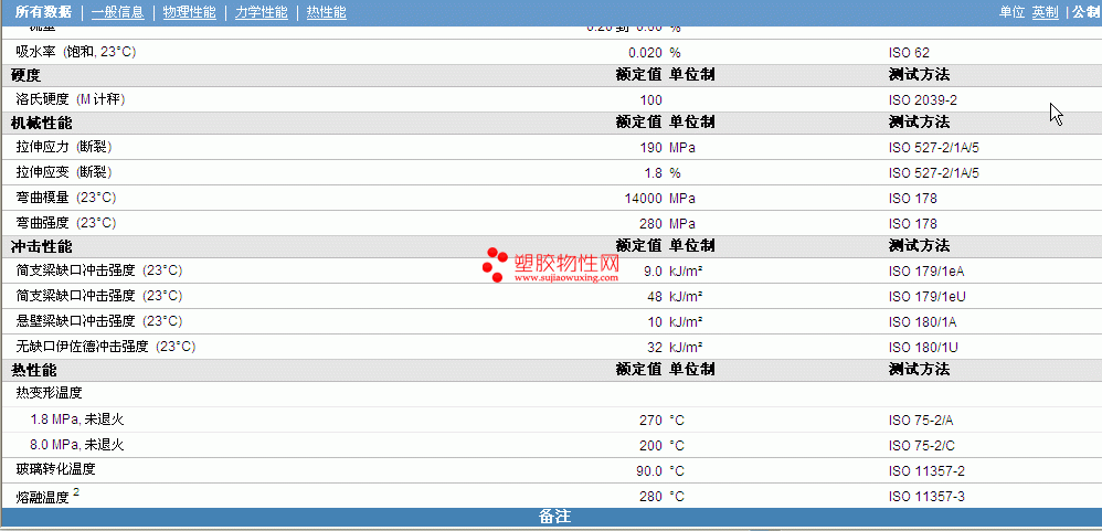 | 物理性能 | 额定值 | 单位制 | 测试方法 |