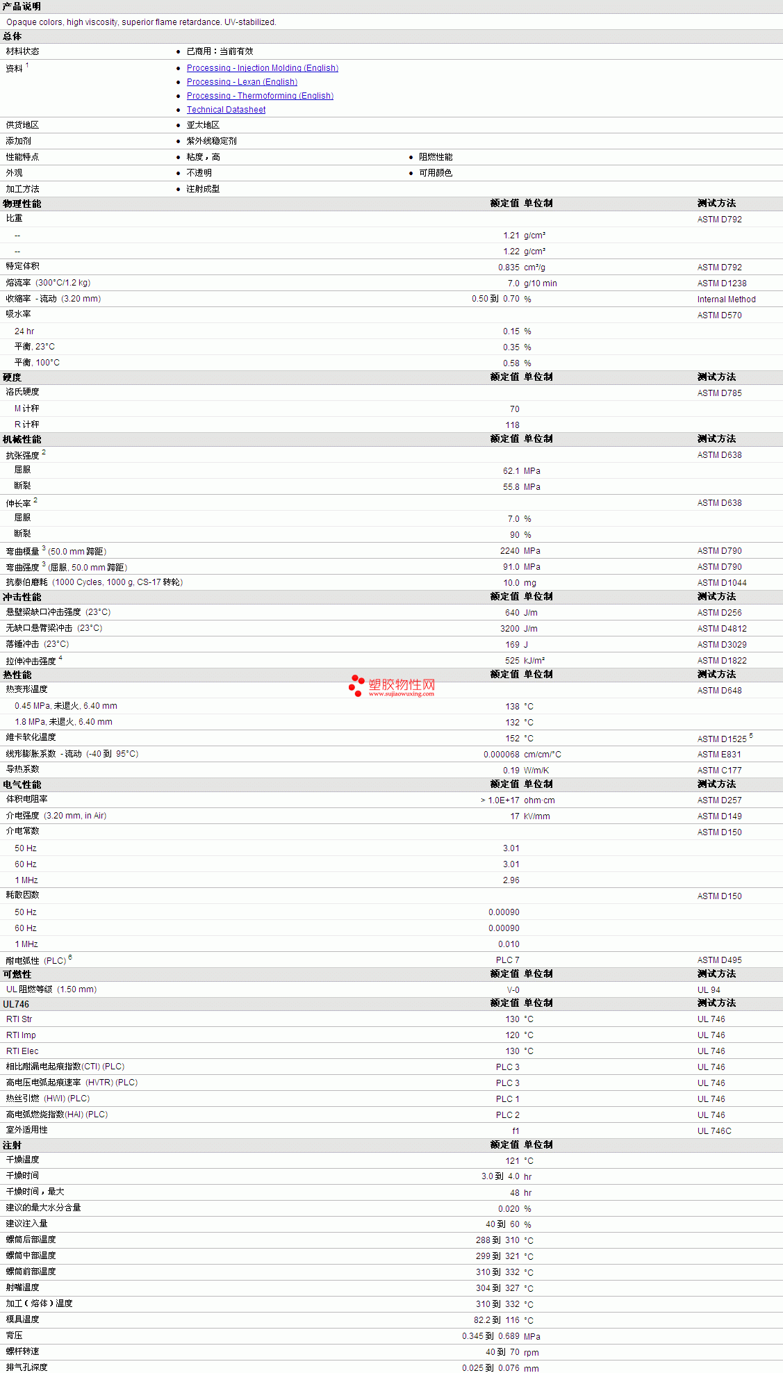 LEXAN PC 953 Resin物性表详情见附件