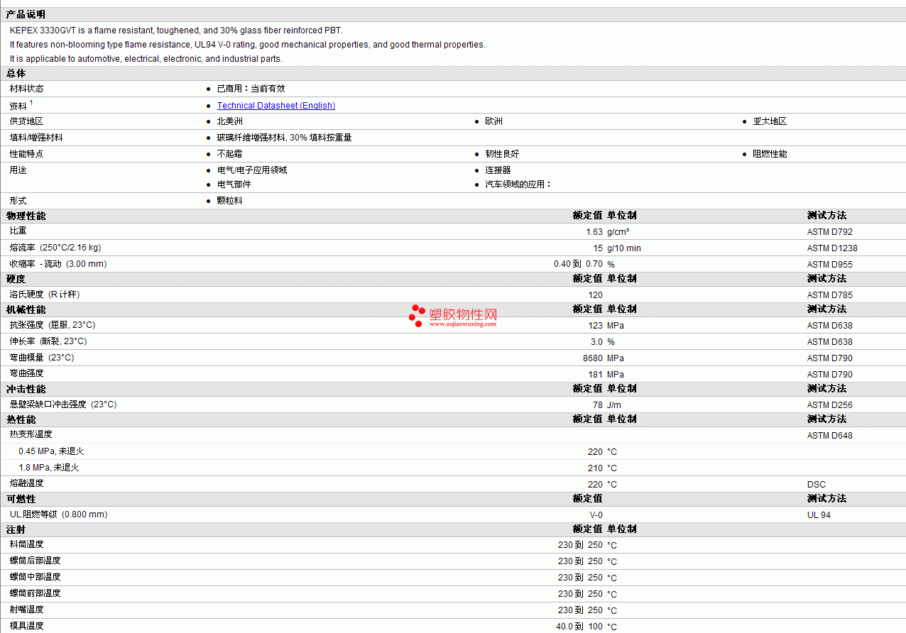 Kepex pbt 3330GVT 塑胶原料更多详情,PC专家,可来电咨询赵先生:13424755533 QQ:27660005