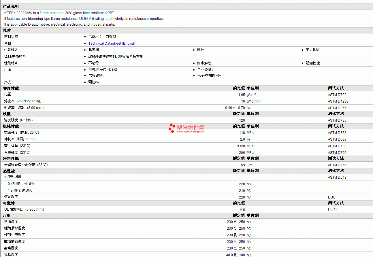 Kepex pbt 3330GVW物性表见图片